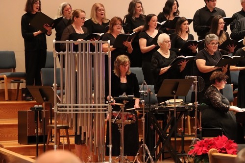 Our services feature both traditional and contemporary elements with handbells, guitar, drums, timpani, tubular bells/chimes, cajon, choir, praise band, piano, and organ.